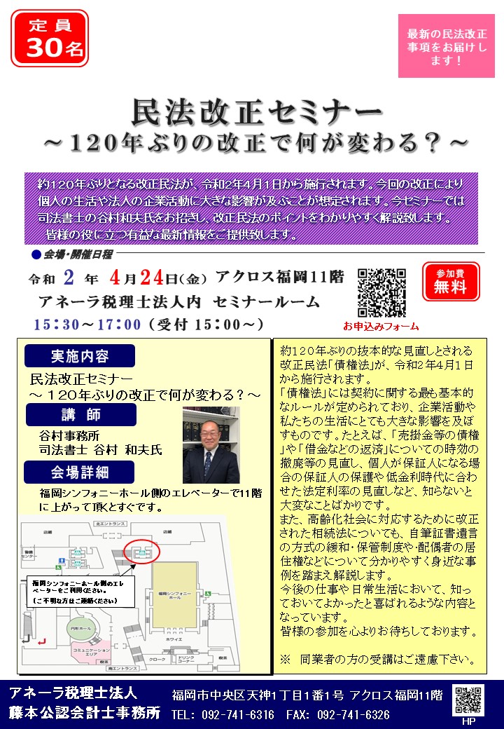 民法改正セミナーのご案内【 4月24日(金)】