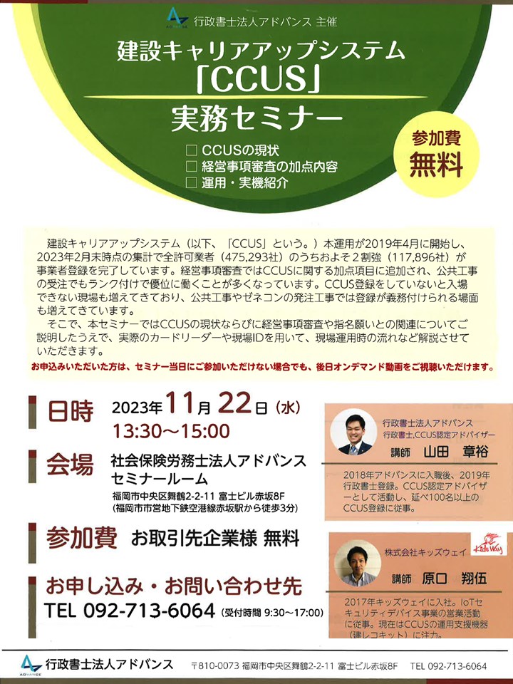 行政書士法人アドバンス主催の建設キャリアアップシステム「CCUS」